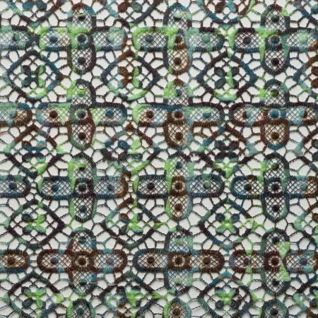 Item Composition: 55% Ramie, 37% Polyamide, 8% Metal Weight: 135 g/m Width: 104 cm Minimum purchase quantity: 1 m Colors: Shades of turquoise and blue