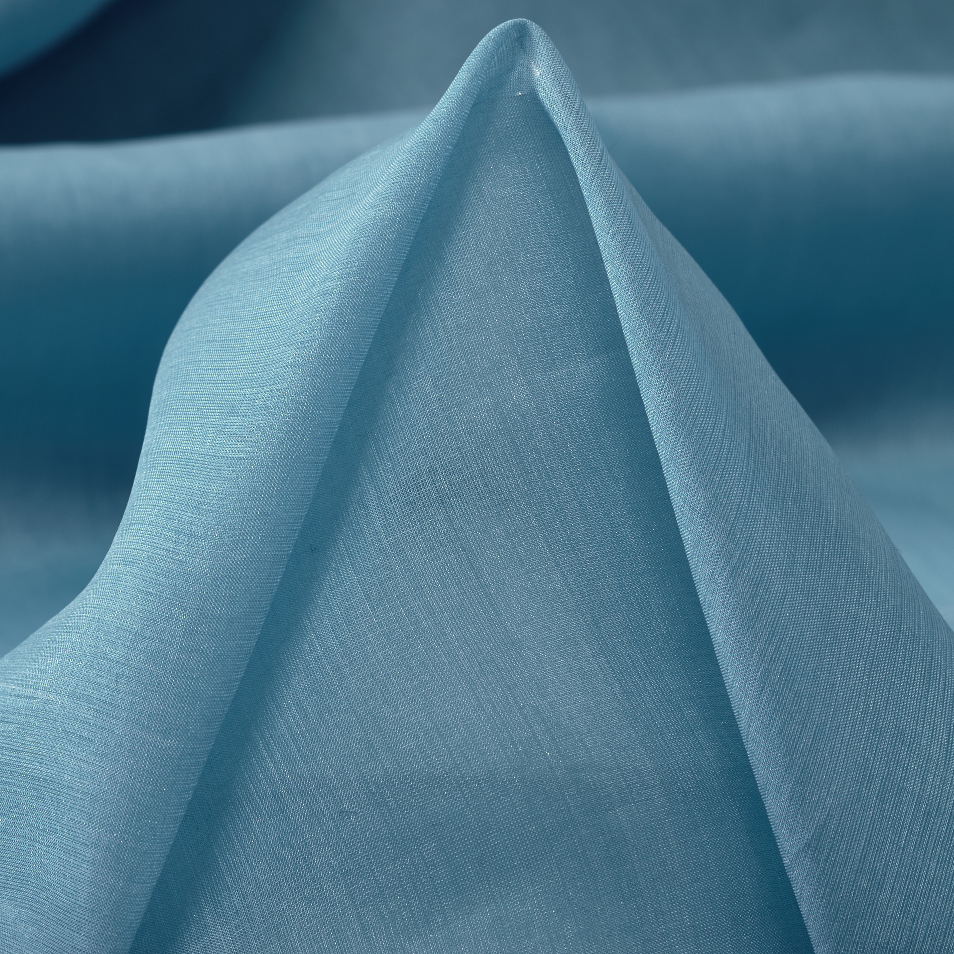 Item Composition: 100% Silk Weight: 50 g/m Width: 133 cm Minimum purchase quantity: 1 m Colors: Shades of turquoise and blue